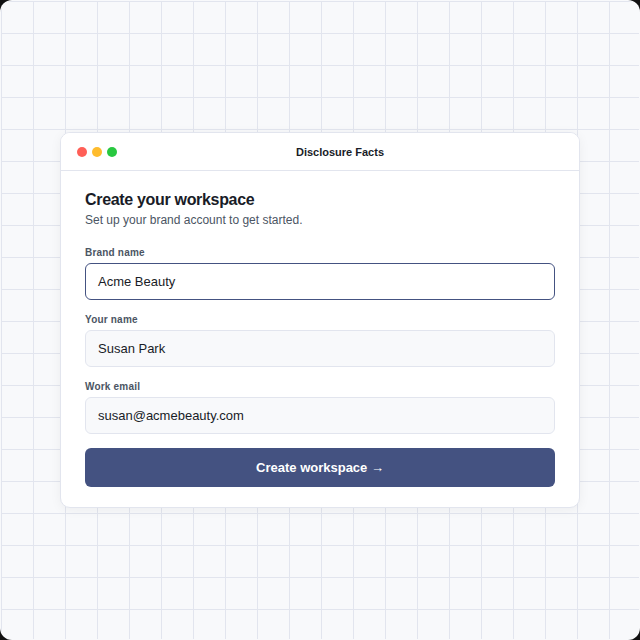 Disclosure Facts generates advertising compliance records and does not provide legal advice. Brands remain solely responsible for their disclosure practices. Company names and logos are trademarks of their respective owners; no affiliation or endorsement is implied unless explicitly stated.