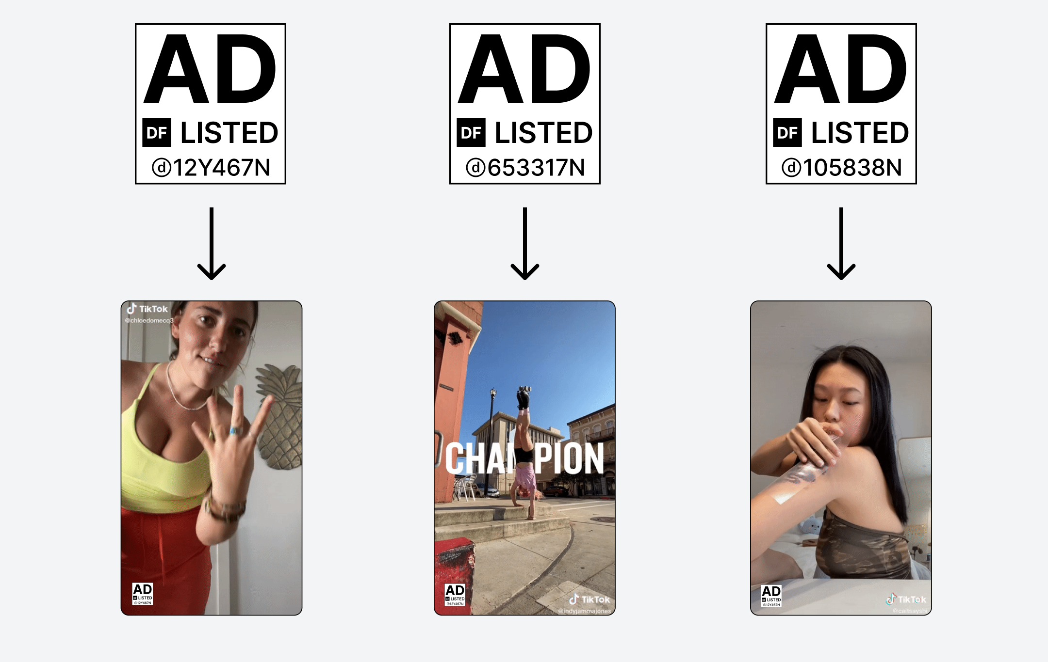 The DF Listed label attaches to every validated ad — social, web, email, retail, CTV. It doesn't depend on the platform and it doesn't expire.