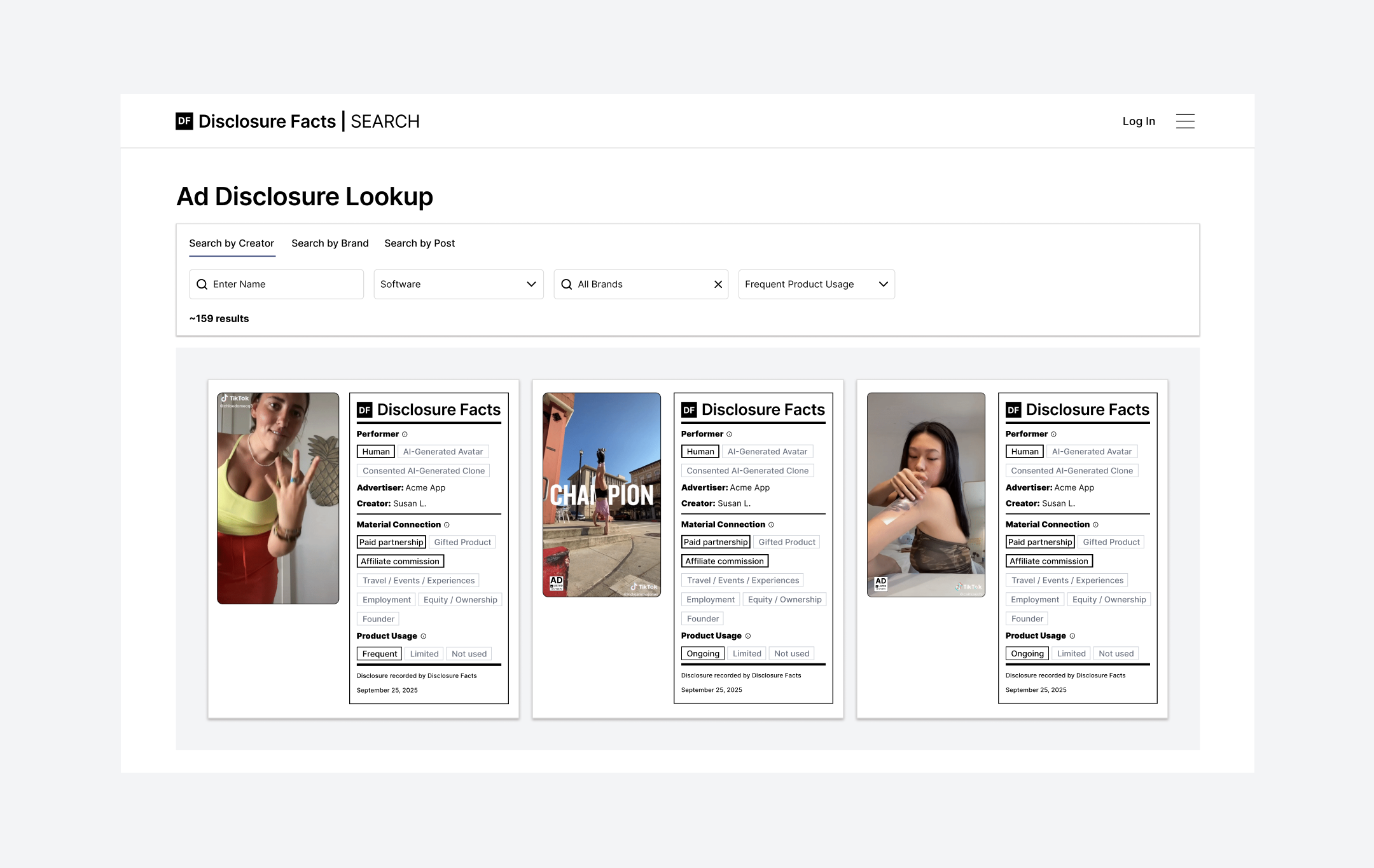 Creators generate and attach labels to ads in seconds. Every label generates a timestamped, publicly searchable record.